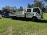 Full set up ready to go: truck with crane, fuel tank, lockable work tools storage, and tipper with tow bar. Ideal for landscaper, plumber, builder, etc.